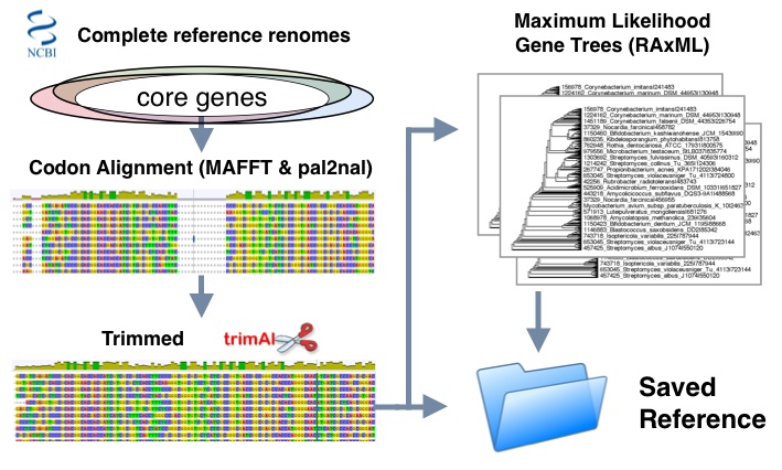 - Set of phyla specific complete reference genomes are used to determine core genes based on ubiquity