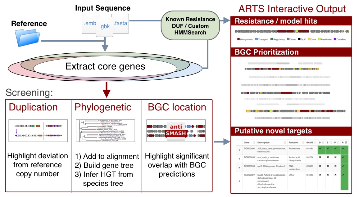 Alanjary,M., Kronmiller,B., Adamek,M., Blin,K., Weber,T., Huson,D., Philmus,B. and Ziemert,N. (2017) The Antibiotic Resistant Target Seeker (ARTS), an exploration engine for antibiotic cluster prioritization and novel drug target discovery. Nucleic Acids Res.,10.1093/nar/gkx360
